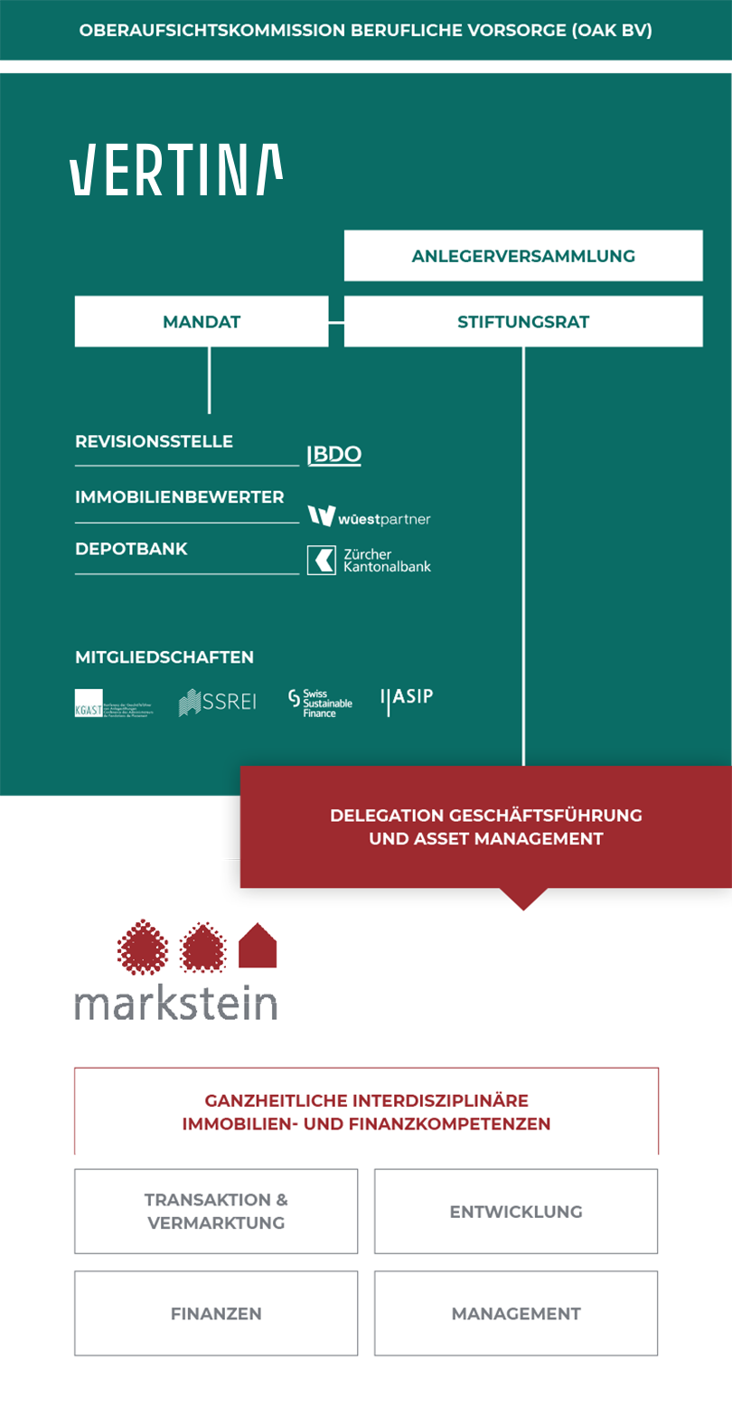 Der Stiftungsrat verfügt über umfassendes Wissen und Marktkenntnisse in den Bereichen Immobilien und Finanzen. Durch die Kooperation mit der Markstein Gruppe stellt er auch für das Management die umfassende Immobilien- und Finanzexpertise sicher, die es für die erfolgreiche Umsetzung der Anlagestrategie braucht.
